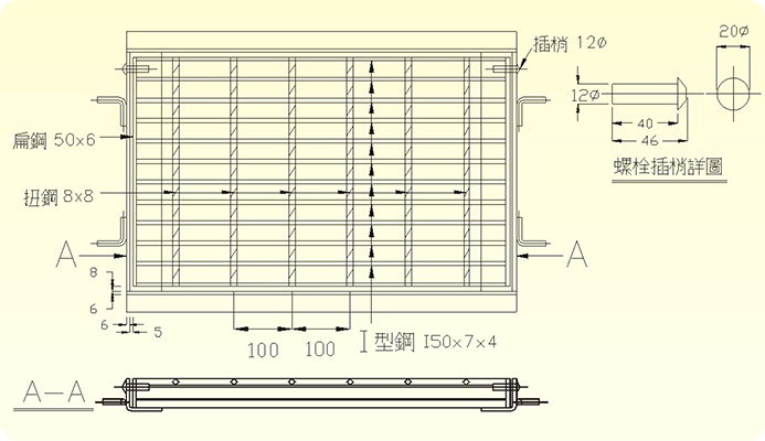 4. 封邊:格柵板兩邊焊以h*6mm之扁鋼,焊渣應清除乾淨。