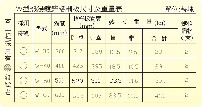 3. 格柵板製造成型後,均須熱浸鍍鋅表面處理, 鍍鋅量:610g/m2以上。